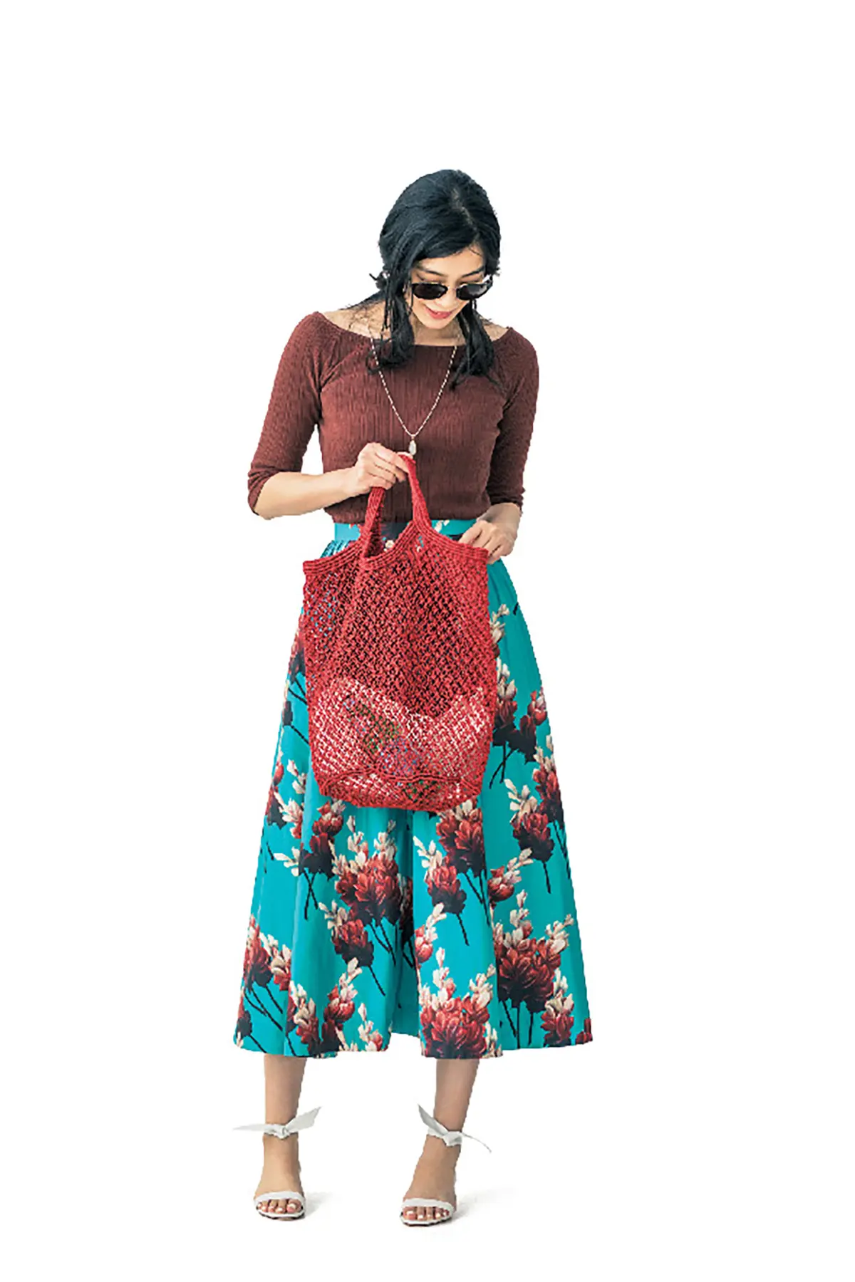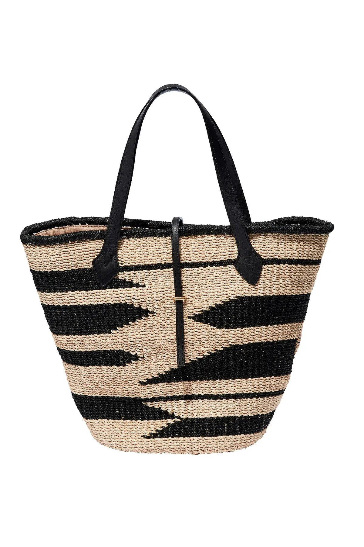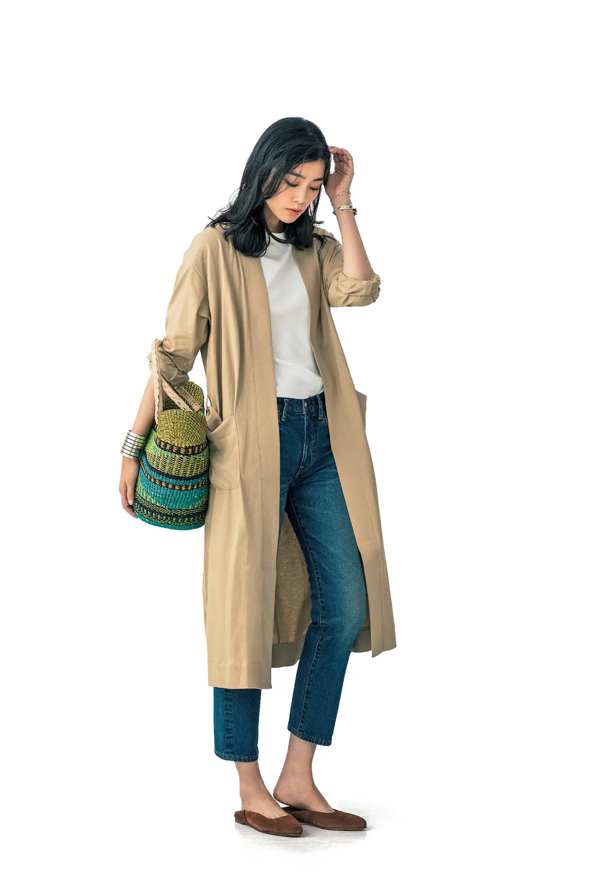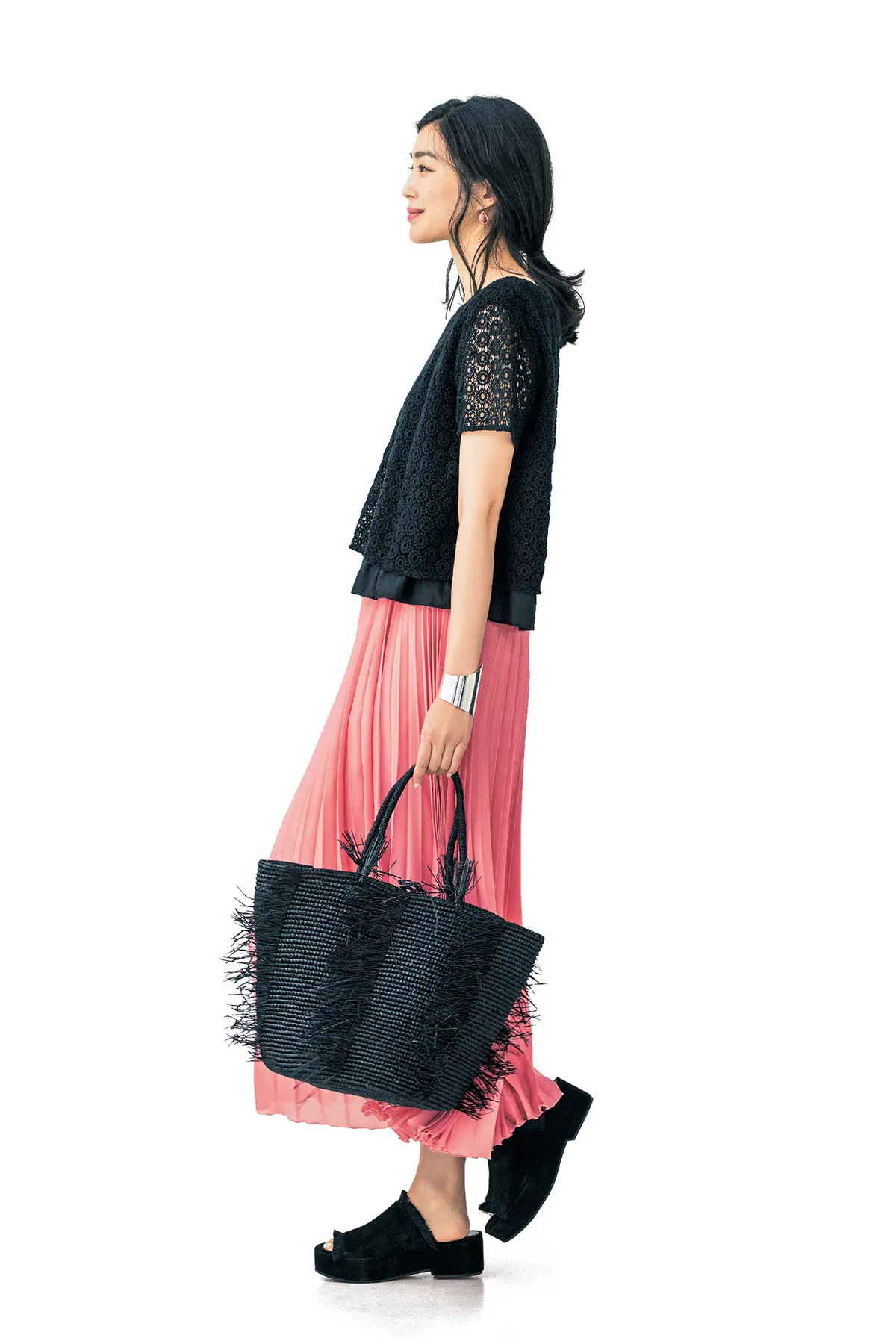 さまざまな民族性を感じるトライバルなかごは、夏ならではのお楽しみ。色使いにもモチーフにも甘さがないぶん、合わせやすい。