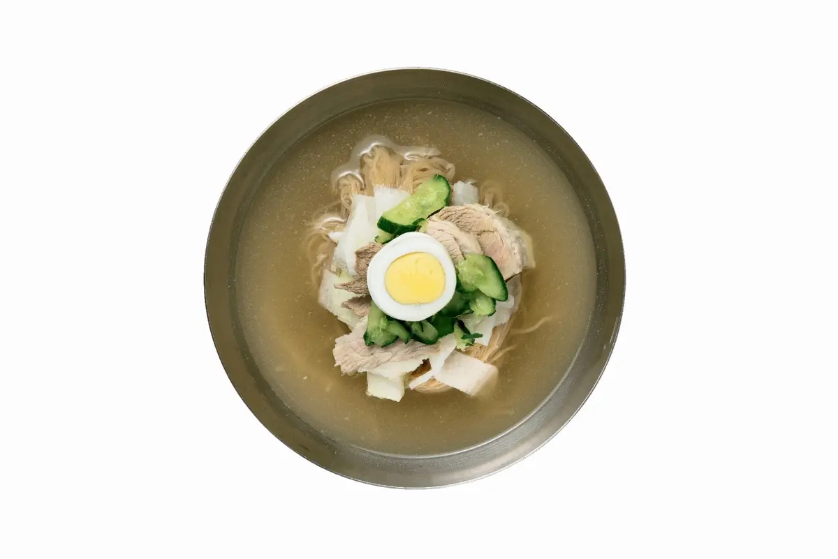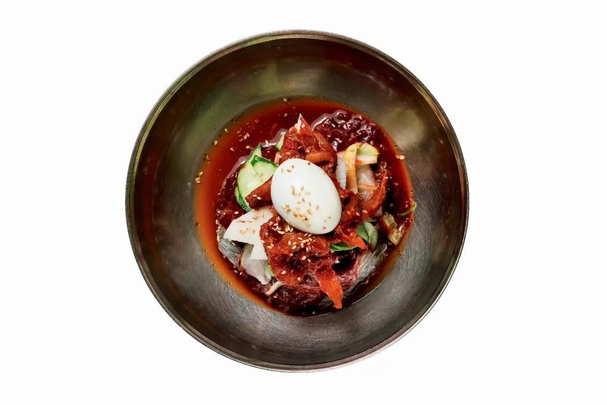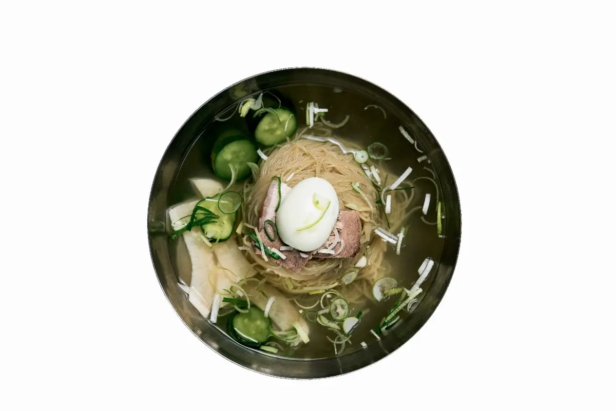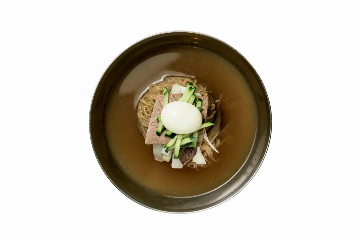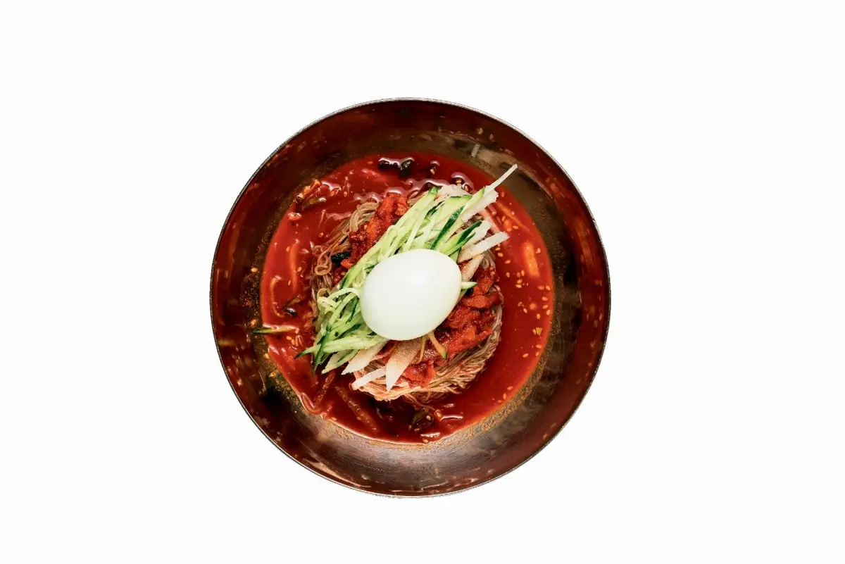 1931年創業の平壌式の老舗。ここ以外では見たことのない別皿の青唐辛子のせん切りトッピングは、麺とは違うシャキッとした歯ごたえが絶妙なアクセントに。"水冷麺"(10,000ウォン)のスープは、韓牛のバラ肉などを煮込み、トンチミ(大根の水キムチ)の汁を加えたもの。すっきりなのに深いコクで、そばの実の皮も練り込んだ麺と抜群にマッチ。どこか品があり、水冷麺の真骨頂を思わせる。絶品のスユク(薄切りゆで肉の料理)も頼みたい。
