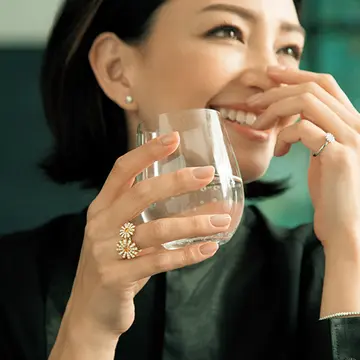 時計「TWENTY~4」(30×25.1㎜、SS×D、クォーツ)¥1,947,000/パテック フィリップ ジャパン・インフォメーションセンター(パテック フィリップ) ブレスレット[時計側から]「タイムレス クラッシコ・アイスバーグ」(WG×D×サファイア)¥1,612,600・¥423,500・「ルーチェ」(WG×D)¥653,400・「タイムレス クラッシコ・アイスバーグ」(WG×D×サファイア)¥1,344,200・リング「エデン」(WG×D)¥657,800/ダミアーニ 銀座タワー(ダミアーニ) シャツ¥141,900・パンツ¥82,500/アクリスジャパン(アクリス)