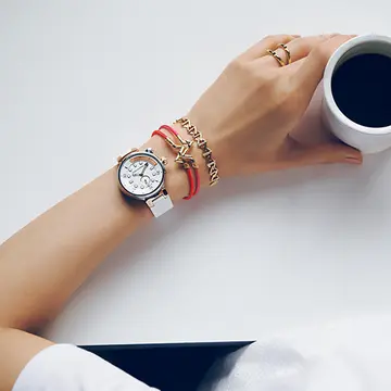 夏の手もとは色ミックスでひと技効かせてフレッシュに。グリーンのストラップが印象的なフランク ミュラーの「ロングアイランド レリーフ」にロエベのバングルをあわせて、手もと映えを狙おう。