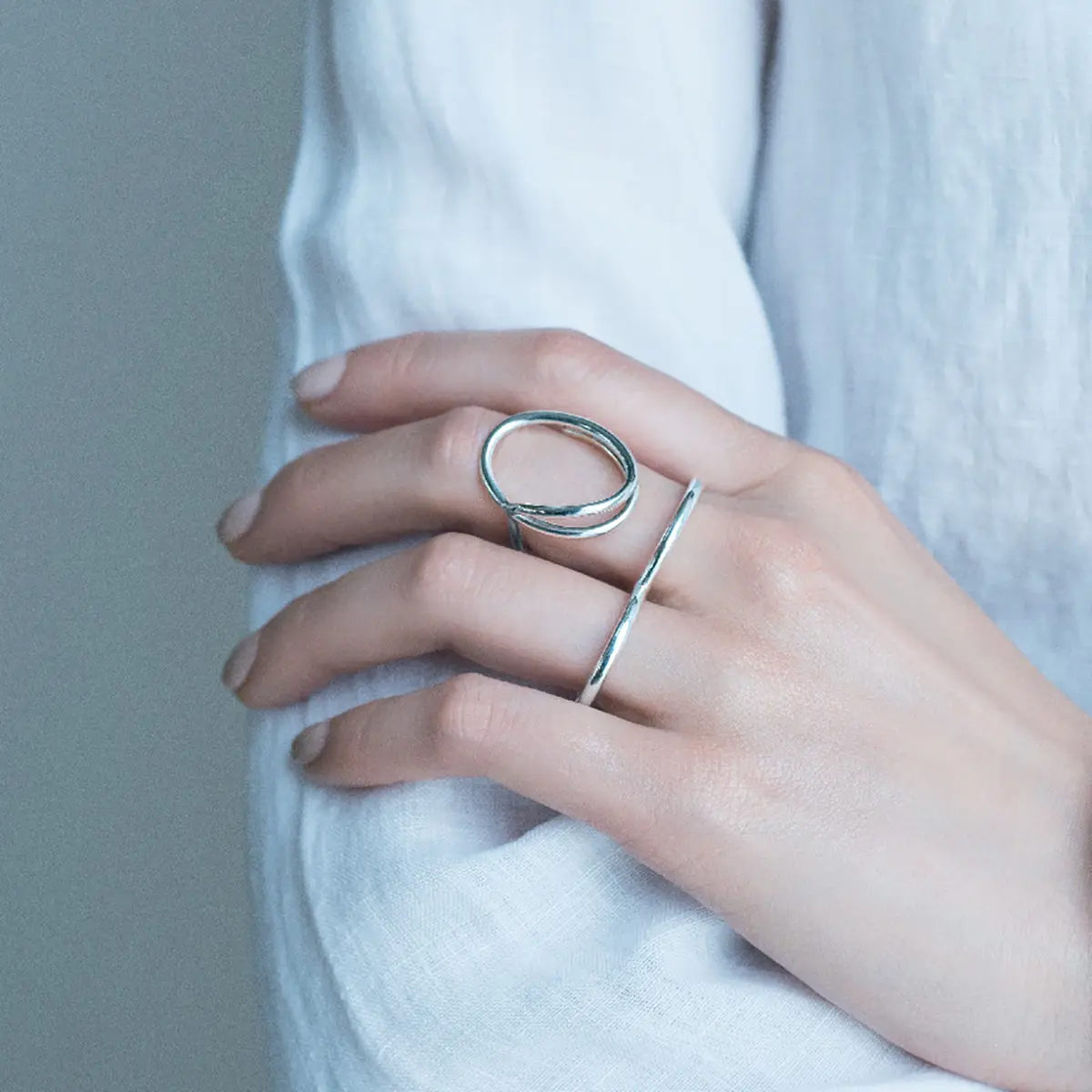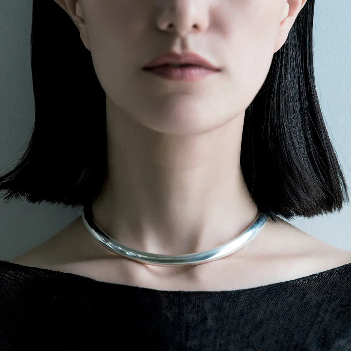 「シルバージュエリーは、華奢なものやシンプルすぎるデザインを選ぶと、大人の肌にのせたときに、どうしても輝きや存在感にもの足りなさを感じてしまうもの。だから、まずはボリューム感のあるものを選ぶように心がけて。そして、どこかモダンさを感じさせるようなグラフィカルなデザインや、ちょっと攻めの要素が入ったデザインのものを選んでみるのもおすすめ。重ね着ができないシンプルな夏の装いに涼しげな個性をプラスしてくれます」(伊藤さん)。