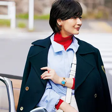時計「オイスター パーペチュアル デイトジャスト 31」(31㎜/YG×D、自動巻き、高精度クロノメーター、100m防水、パワーリザーブ約55時間)¥4,925,800/日本ロレックス(ロレックス) ニット¥86,900/3.1フィリップ リム ジャパン(3.1フィリップ リム) スカーフ¥14,300/エストネーション(マナー マーケット) サングラス¥50,600/ケリング アイウエア ジャパン カスタマーサービス(クロエ) バングル¥465,300/エスケーパーズオンライン(キウナ) リング¥390,500/ボロロ