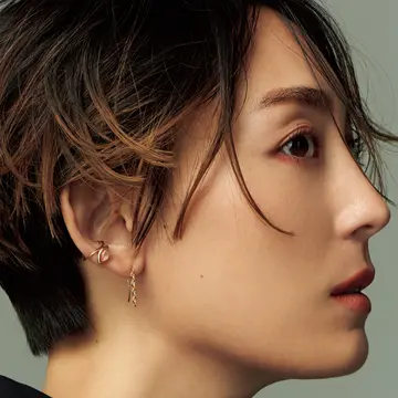 華奢なゴールドのフープモチーフは、控えめな遊び心が魅力。流れるピアスと合わせれば、ノーブルな雰囲気の中にもほのかに匂いたつような女性らしさが。イヤカフはセンターをずらして耳たぶにかかるようにつければ、ピアスのように見えつつも、少しだけ攻めた印象に。ふとした動作で揺れ動く繊細なゴールドに表情までが優美に引き立ち、目にした人の記憶にも鮮明に刻み込まれるはず。