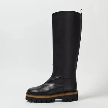 ファッショニスタの間でも定番化している名品ブーツの遺伝子を継ぐ太めの美シルエット。ボリュームのあるラバーソールが落ち着いたカジュアル感をきわだたせるロングブーツ。上品さをきわだたせるのは、独特の艶のある本革の質感。締めつけなく履けるやや太めの筒は、パンツインもしやすいから、大人の秋冬コーデをブラッシュアップしてくれること確実!