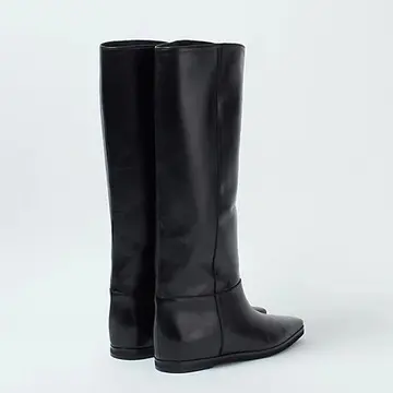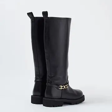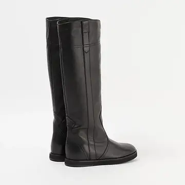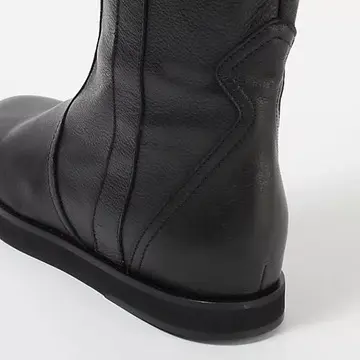 日本女性の足に合うように設計されており、なんといっても軽くて履きやすいのが人気の理由。フラットに見えて実はウエッジインソールが内蔵されているので、さりげなくバランスアップがねらえるのも魅力。ストレートな太筒が今の気分にぴったり。しなやかなイタリア製ナッパレザーを使用。スポッと簡単に足入れできる太めの筒が快適。スタッフまわりでも購入者続出。
