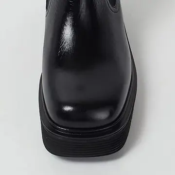 上品な光沢のシャイニーカーフレザーとスクエアトゥが特徴。見た目に反して軽やかな履き心地なのもうれしいポイント。厚みのあるソールも今年らしく、鮮度の高い足もとに。ライニングとインソールもレザーでカジュアルながら高級感たっぷり。
