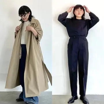 モデル着用のオイスターのほか、すっきり見えてモード感を演出できるブラックも。股上が深めなので、おなかまわりをしっかり温めてくれる。