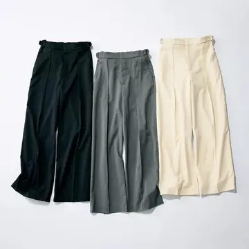 誌面掲載のたびに大反響を呼ぶ伝説のパンツに、エクラ別注のグレージュカラーがお目見え! さらに同素材のブラウスも登場。セットアップでの着用が可能になり、ますますパワーアップ!