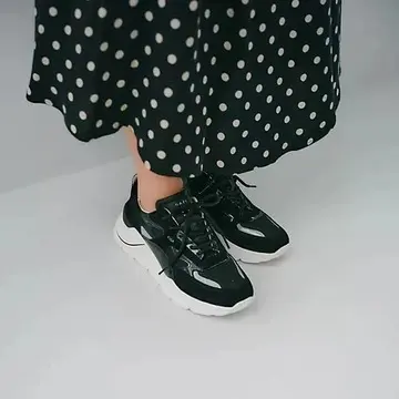 スポーティながらきれいめコーデにも合うと大人女性からも大人気。衝撃吸収性に優れたソールは厚底だけど見た目より軽く、ヒールっぽく見えて美脚効果も!白×黒のバランスのいいブラックは重たく見えすぎずに、秋冬コーデの足元に映えること間違いなし。
