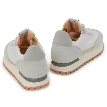 従来のモデルよりも軽量にすることで履き心地のよさを追求。スエードと組み合わせたナイロン素材が新鮮。ソールは厚底にアップデート。この型と配色はエクラのために復刻。ほどよい厚底フォルムが、自然と脚長に見せてくれる。白をベースにしたライトグレーの配色が素敵。