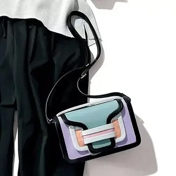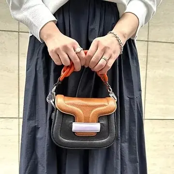 ピエール アルディの代名詞ともいえる「アルファ ハンドバッグ」の新色はメリハリの効いた配色が印象的。コーディネートのスパイス役として圧倒的な存在感を放つ。ハンドル持ちでクラッチバッグとして、またはロングショルダーでクロスボディにして使うことも可能。背面ポケットにまで配色が施されていてかわいい! 黒のトリミングが全体の印象をシャープに。