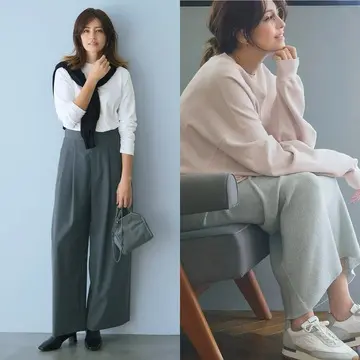 【スタイリスト 村山佳世子さんより】「上下を優しい配色でまとめると、Tシャツが一気にリッチな印象に。ウール素材ならではのニュアンスがコーデを格上げしてくれます。」