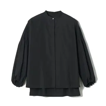 ドロップショルダーから繊細なピンタックを施したふんわり袖がかわいい! しわになりにくい素材を吟味しており、デイリーにも気楽に着られる。裾に前後差をつけてあり、トップスアウトでもすっきりバランスよく決まる。サイズは右から36(NEW SIZE)、38、40。