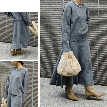 ベースはシンプルでベーシックなクルーネックニットで、ほんのりラメの入ったアルパカ混素材を使いリッチな編み地で仕上げた一着。身頃と袖にゆとりがある鮮度の高いシルエットが魅力。