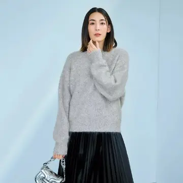なめらかで上質なウール混カットソー素材を使用。ゆとりのある身頃とたっぷりとしたドルマンスリーブでありつつ、手首部分を少し細めに設定することでキュッとメリハリのあるシルエットに。