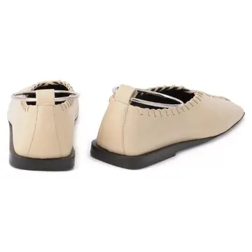 抜け感とモダンなムードを兼ねる、主役級のバレリーナ。バブーシュ風のデザインに惹かれるバレリーナシューズです。甘さ控えめのノットレザーストリップのディテールは、クラシックなエッセンスがありつつも新鮮。トウシューズのリボンを思わせるメタルパーツも、モードに導くシルエットに更新してくれそう。ボディはしなやかで強度も高い山羊革を採用。長く愛せるつくりの良さも魅力です。