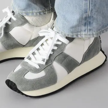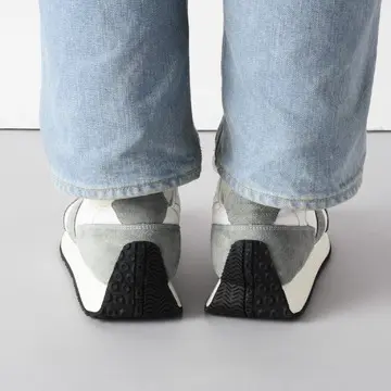 レトロな雰囲気のランニングスニーカーで、適度にボリューム感がありつつ細身ですっきりとしたシルエット。クッション性に優れた厚底アウトソールを採用し、長時間履いても疲れにくい。通常はブランドロゴ入りの総柄インソールで、シンプルな無地タイプはこの別注だけのスペシャルバージョン。