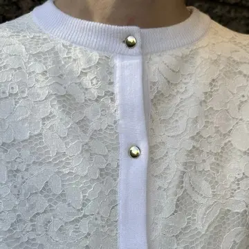 カーディガンではありますが、ボタンを留めてトップスとして着るのが一番のおすすめです。レースの華やかさが際立つのでどんなボトムにも似合うのです。
