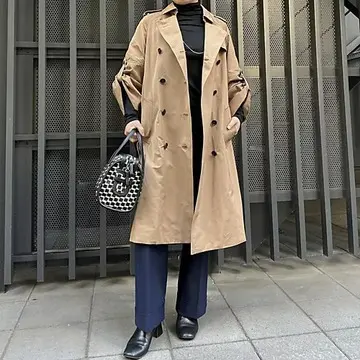 ゆとりのあるサイズ感、着丈はやや短めで今どきのバランスに。大きめボタンと幅広のリブも映えるポイント。