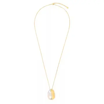 ナチュラルなバロックパールのサイドにゴールドをコーティングし、角度により異なる表情に。ボリューム感のあるパールと繊細で長めなチェーンの組み合わせは、シンプルになりがちな冬の装いのアクセントにおすすめ。60cmチェーンに5cmのアジャスターつき。素肌の上に、ニットの上にとスタイリングに合わせて楽しめる。角度によりきらめくカットケーブルチェーンも美しい。