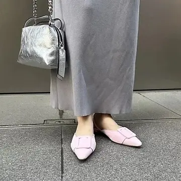 足元に抜け感が出ると人気急上昇中のシルバーシューズを、春はローファーでトラッドに取り入れてみては?アーモンドトゥが足先をきれいに見せてくれて、素足でもソックスを合わせてもきちんと感をキープ。