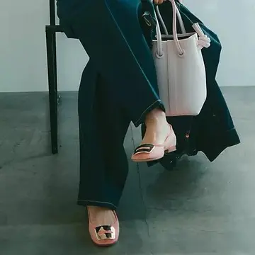 大きなバックルデザイン、スウェードピンクの可愛さ、どこをとってもかわいい最愛シューズ。眺めているだけでも楽しいのですが、バックルがゴムなのではき心地も秀逸です。デニムなどのコーディネートにアクセントとして取り入れてもらいたい、本当にお薦めのアイテムです
