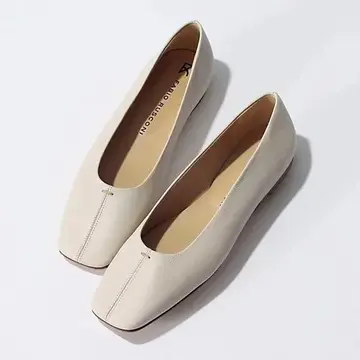 シーンを問わず合わせやすいバレエシューズ。ストレスフリーな履き心地の一足があれば安心。これはアッパーが柔らかく、ソールには適度に弾力のあるラバーを使い驚くほど歩きやすい。バランスのいいトゥの丸みと深いカッティングで足がすっきり見えるのも◎。