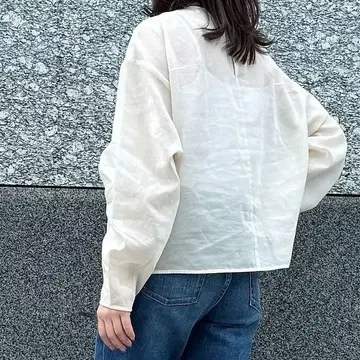 肌馴染みの良いアイボリーは、レフ板効果で顔まわりをパッと明るく彩ってくれる。フレッシュさと気品を兼ね備えたこのトップスなら、シンプルにデニムに合わせるだけで、リュクスな印象に。