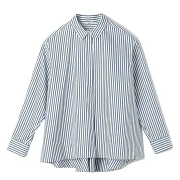 横に広がらず縦に立体的に見せる事で着やせ効果発揮するバックフレアシャツを、155㎝のアラフィフスタッフが実際に着用してみました!骨格ストレートなので身体に厚みがある&関節は細め。袖をロールアップし、手首を見せる事で華奢見え、さらに気になるウエストまわりもフレアシルエットでカバーしてくれて、ストレートな身体を立体的に美しく見せてくれました!
