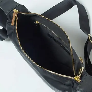 斜めがけがスタイリッシュに決まり、ファスナーできっちり閉めることができるバッグは、旅に不可欠なアイテム。弱撥水性のナイロン素材で気軽に持つことができ、金具のゴールド使いで女性らしい印象に。内側のポケットが充実しているのも、旅にうれしい特徴だ。