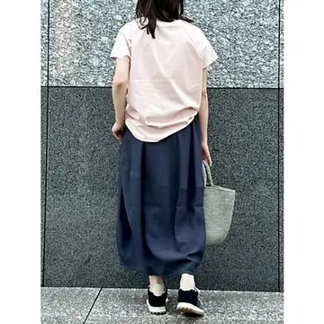 カジュアルなスカートとスニーカー合わせでデイリーな着こなしにしてみました。体のラインも拾わないので気軽にたくさん活躍してくれそうです。