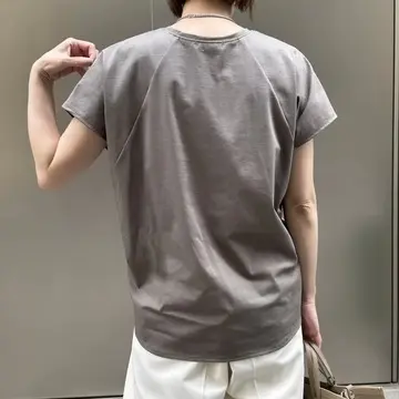 きれいめに着られるTシャツは、大人のおしゃれのマストアイテム。つるんとした上品な素材感とほどよくゆとりのあるシルエットで、絶妙な袖丈のフレンチスリーブが肩まわりと二の腕をカバーしてくれる。ドルマン風の切り替えによりニュアンスのある立体的なフォルムが完成。