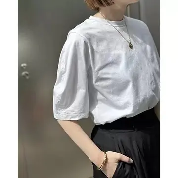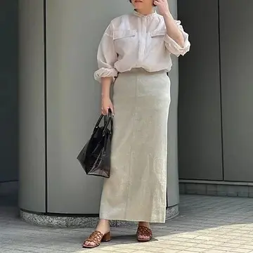 昨年の猛暑のせいでクローゼットの中がイージーケアで着られるTシャツだらけに><。今年はTシャツに頼らずちゃんとお洒落をしたいと悩んでいた時にこのブラウスに出会いました!!涼やかなシアー素材で袖をロールアップすると充分夏まで使えます!ハリ感のある生地で肌から離れてくれるので、風通しも良いです。ほんのりピンクが若々しく見せてくれて、夏だけど肌を露出したくない大人の味方になってくれるアイテムです!