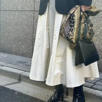 意外に地味見えしてしまうこともあるスカートコーデに効くのが柄ストールです。ピエール ルイ マシアは天才的な配色が特徴。リッチ感ある華やぎを添えてくれます。byスタイリスト 徳原文子さん