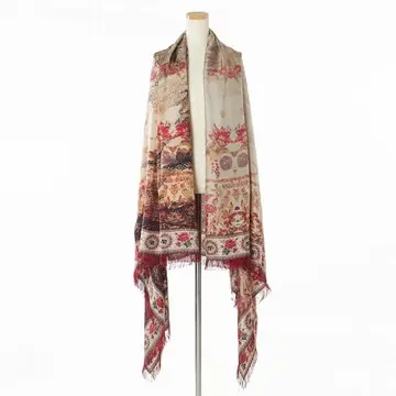 通年使える上質なシルク素材に見事なプリント、繊細なフリンジも素敵