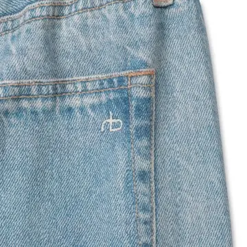 ジャージー生地にリアルなデニムプリントを施し、どう見ても本物のデニムにしか見えない再現度の高さに驚きます。ラグ&ボーンのデニムを象徴する、バックポケットのブランドロゴ刺繍も、こんなにリアル。色落ち加減も絶妙で、こなれ感たっぷり。