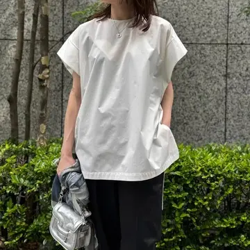 Tシャツ感覚で着られるので、もちろんデニムとも好相性。ボトムスにインせずともスタイルが決まる美シルエットなので、コーディネートが簡単! 首元には大振りなネックレスや、こんな風にスカーフを巻くのもおすすめ。シンプルだけれど洒落感が漂う、粋なお洒落が叶います。