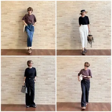 ツインニット×セミワイドパンツ