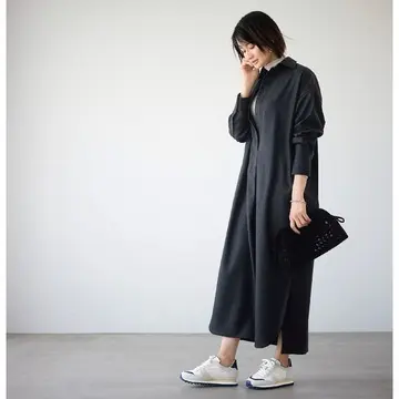 01 グレースニーカーで黒スカートに、品よく抜け感をプラス
