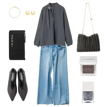 シンプルながら計算されたディテールで、大人の体型を美しく見せるカットソーワンピース。高めのウエスト切替で脚長効果を、ゆったり袖で二の腕をカバー。後ろはラップ仕様でヒップラインもさりげなく隠せる優秀デザインです。合わせたフードジャケットは、精巧なデニムプリントが洒落感を演出しつつ、柔らかなスウェット素材で着心地も抜群。Gジャンが苦手な方にもおすすめです。小物は黒ブーツや編みバッグで引き締めて、長距離移動にも対応する快適&上品な週末スタイルが完成。
