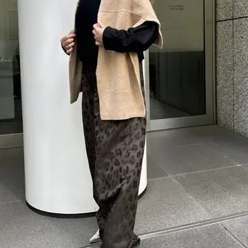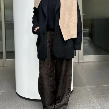シンプルな着こなしを一瞬で格上げするのが、【PROTAGONISTA】のカーディガン風ストール。ウール混の柔らかな質感と、肩にかけるだけで決まる計算されたシルエットが魅力です。大人の肌色を引き立てるベージュは、顔まわりを明るく見せてくれる効果も。今回は黒のタートルニットに、レオパード柄パンツを合わせて、都会的な抜け感をプラス。巻くだけでおしゃれに変身できる、頼れる一枚です!