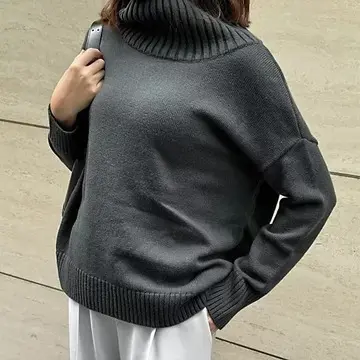 E by eclatのボトルネックニットは、もう手放せない私の定番です。今季の新色モーキーグレーは、シックでどんなボトムにも合わせやすく、顔まわりをすっきり見せてくれる絶妙な色味です。首がきれいに見えるだけでなく、小顔効果もあるので、シンプルなのにスタイルアップできるのが嬉しいポイント。素材はウールとアクリルの混紡で、ふんわり軽やか、しかもチクチクしないしっとり感。カジュアルにもきれいめにも着回せる万能ニット、今年も買ってよかったと思える一枚です。