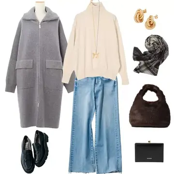 ホテルランチにも街歩きにも映える、上質な週末コーデ。E by eclat × 福田亜矢子さんコラボ】の軽量コートジャケットは、ふんわりとしたキャメルカラーが、柔らかな印象を添えます。合わせるのは、ブラウンのオーガンジースカート。軽やかな透け感が、秋の装いに華やぎをプラスします。足もとはCORSO ROMA,9のブラックエンジニアブーツで、甘さを引き締めてモード感をひとさじ。キャメル×ブラウンの上品なトーンに、レオパード柄バッグを効かせれば、50代の週末にふさわしい洗練スタイルが完成します。