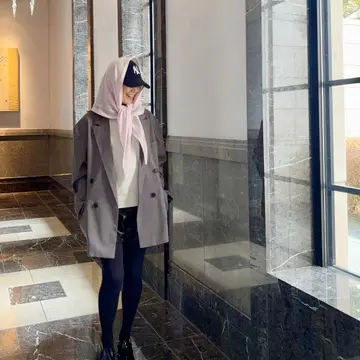 モノトーンコーデにさらっとかけるだけで、こなれ感をプラス。絶妙な淡いピンクだから、浮かずに馴染みます。