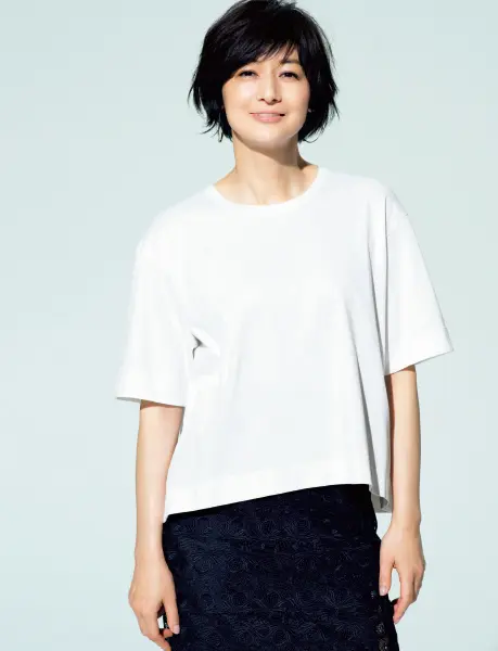 テクニックや"盛り" を加えなくても、着るだけで高見えして、一枚で主役になれる大人のためのTシャツづくりを目ざしてスタートしたプロジェクト。ついに、理想の一枚が完成しました!どんな体型の人にも合うよう、計算しつくしたワンサイズ展開。そのかわりに、丈を2型にすることで、トレンドボトムとも定番ボトムとも合わせやすいように考えました。大人の体を美しく見せ、そして、今の気分をかなえてくれるTシャツで、この夏のおしゃれを楽しんでください。ーYOSHIKO TOMIOKA
