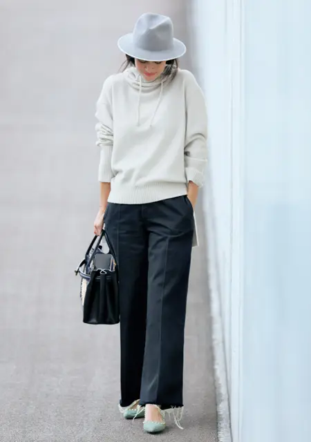 「昨シーズンからのスカートブームも一段落し、この秋冬は、パンツ人気が復活する兆しです。洗練されたムードを演出してくれるパンツスタイルは、エクラ世代には欠かせないファッションのひとつ。