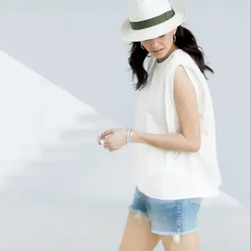 スタイリスト・戸野塚かおるさんが選んだ、大人にこそすすめたい“涼素材&上品な肌見せ服”をご紹介! トレンド見えしながら体型カバーも叶えるマリハのワンピースと、エンリカの柔らかなリネンストールでストレスフリーながらも洗練された印象に。